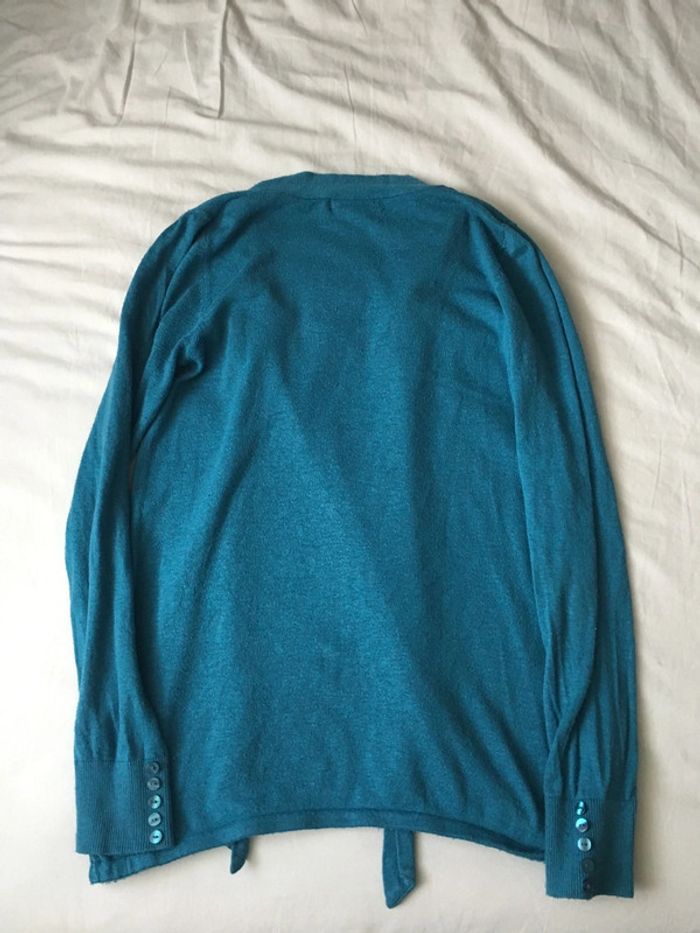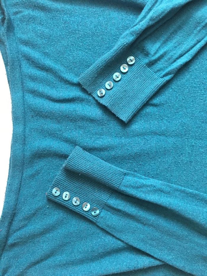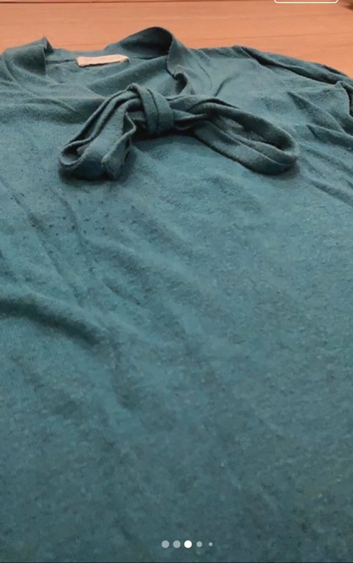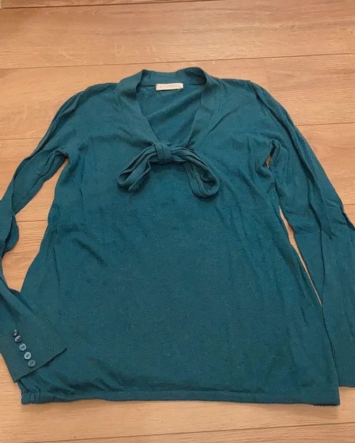 coloris vert d’eau Porté mais ne présente aucun défaut : ni troué ni taché. Col lavallière