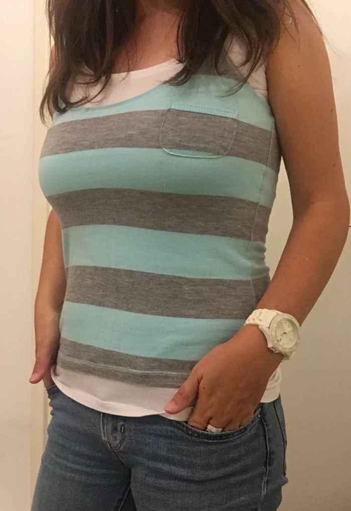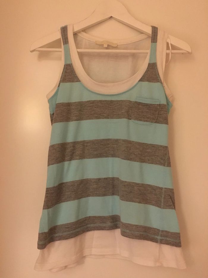 lot de débardeurs superposés taille s très bon état blanc, gris et bleu très clair