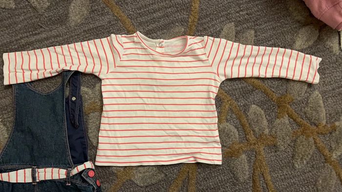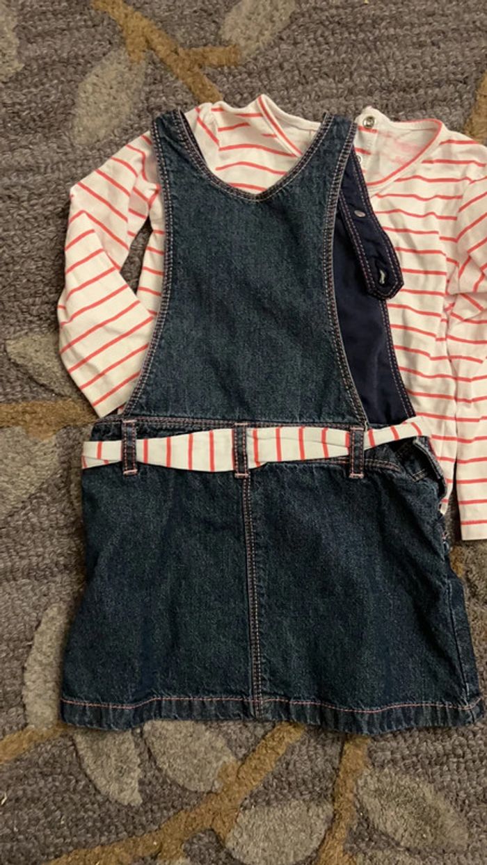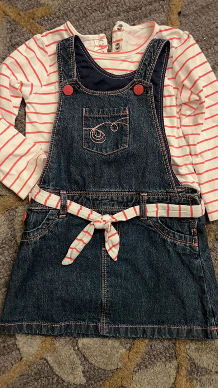 86 cm 18 mois Robe-salopette en très bon état peu porté Haut contient 2 peut trou derrière