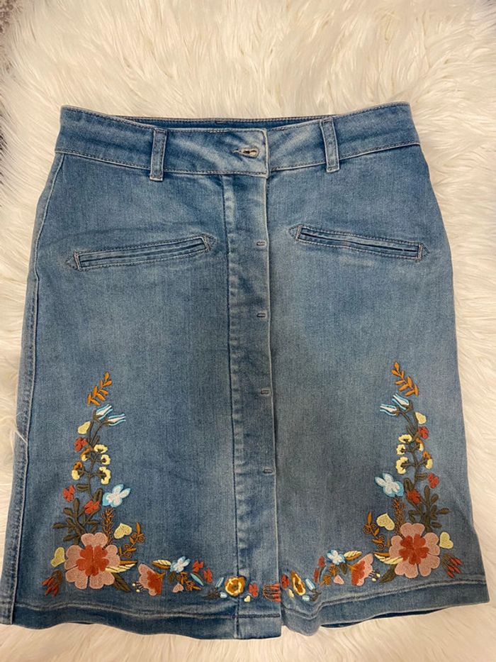 Jupe crayon en jean brodée - photo numéro 1