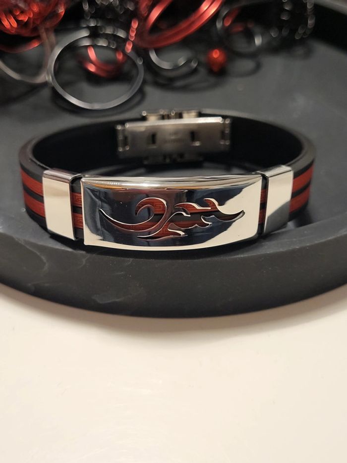Bracelet Homme rouge et noir Flamme polyuréthane - photo numéro 1