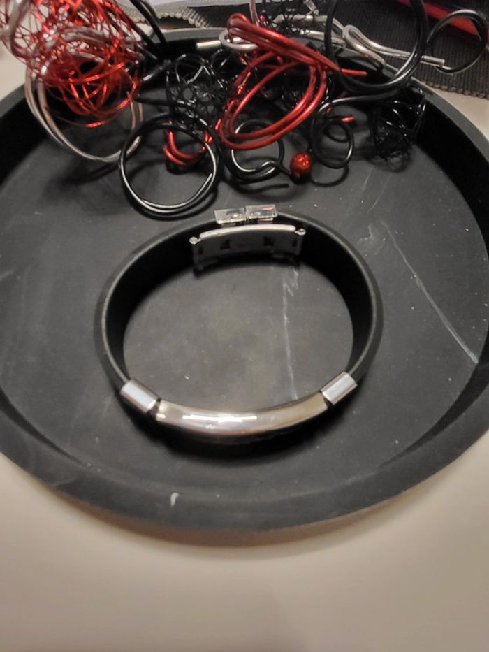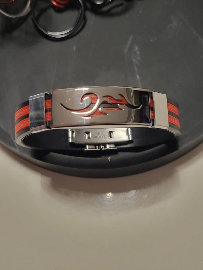 Bracelet Homme rouge et noir Flamme polyuréthane Envoi rapide et soigné Remise sur lot