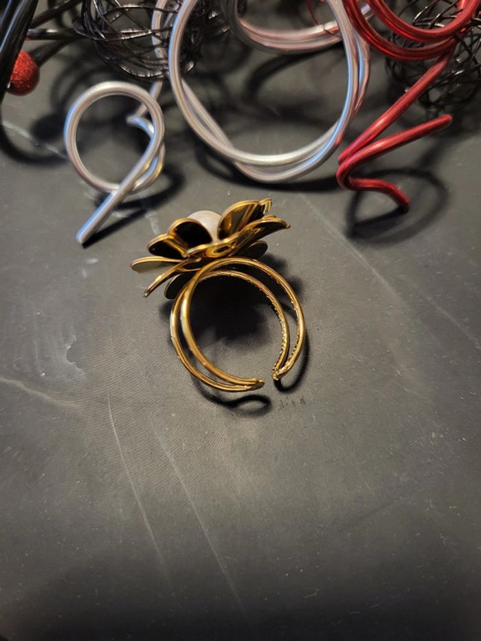 Bague acier inoxydable en forme de fleur dorée et noire - photo numéro 1