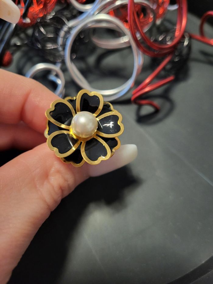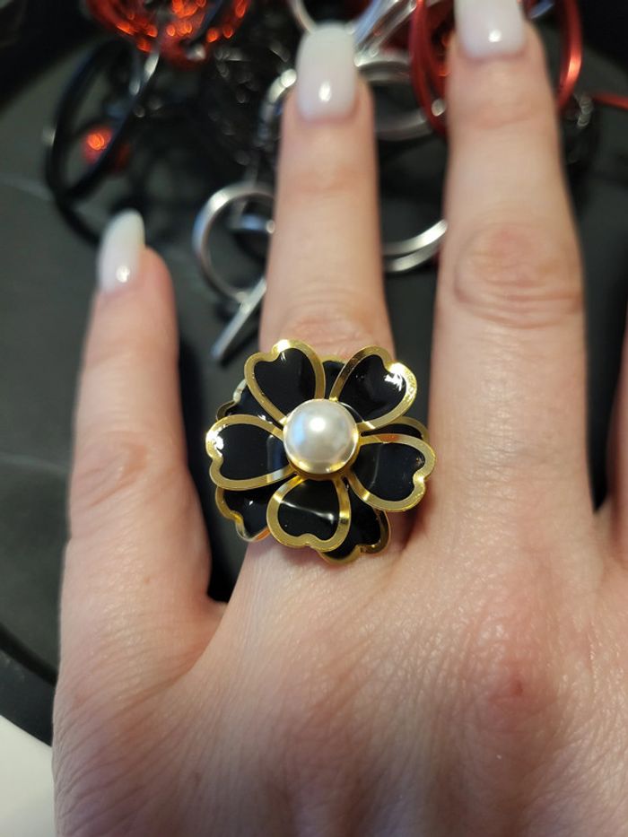 Bague acier inoxydable en forme de fleur dorée et noire Envoi rapide et soigné Remise sur lot