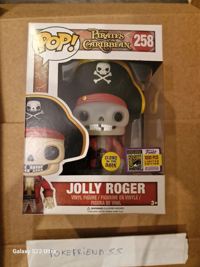 Funko pop Jolly Roger Pirates des Caraïbes GITD limitée à 1000 exemplaires de la San Diego Comic Con État mint, jamais sortie de sa boîte, jamais exposée au soleil et maison non fumeur! Envoi rapide et soigné