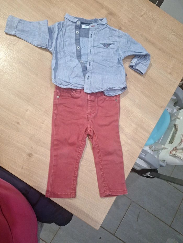 Ensemble garçon- chemise OBAIBI et pantalon LA BOITE A MALICES - taille 12 mois