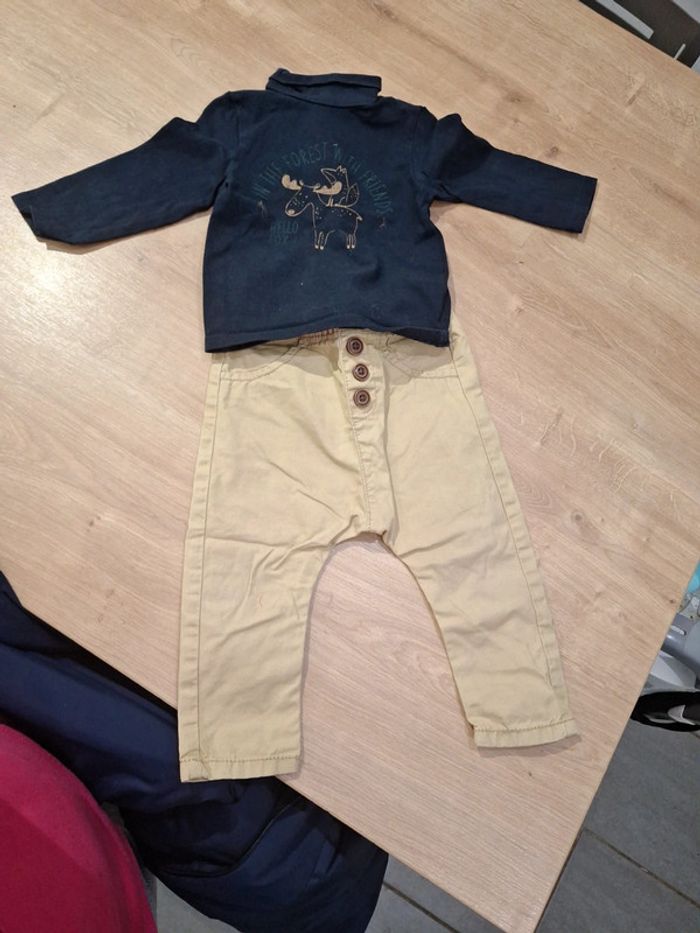 Ensemble garçon- pantalon TAPE A L'OEIL et tee-shirt ML KIABI - taille 12 mois