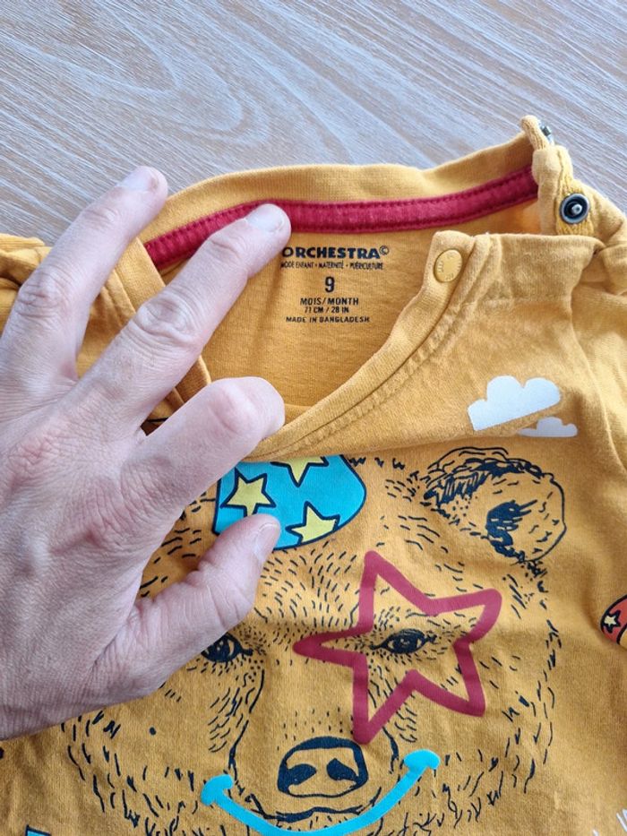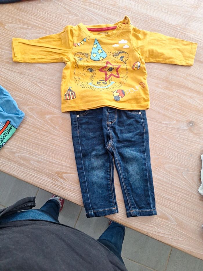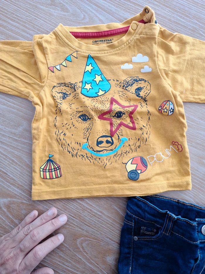 Ensemble garçon : pantalon TAPE À L'ŒIL + tee-shirt manches longues ORCHESTRA taille 9 mois