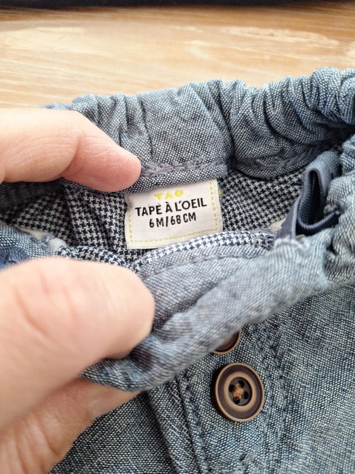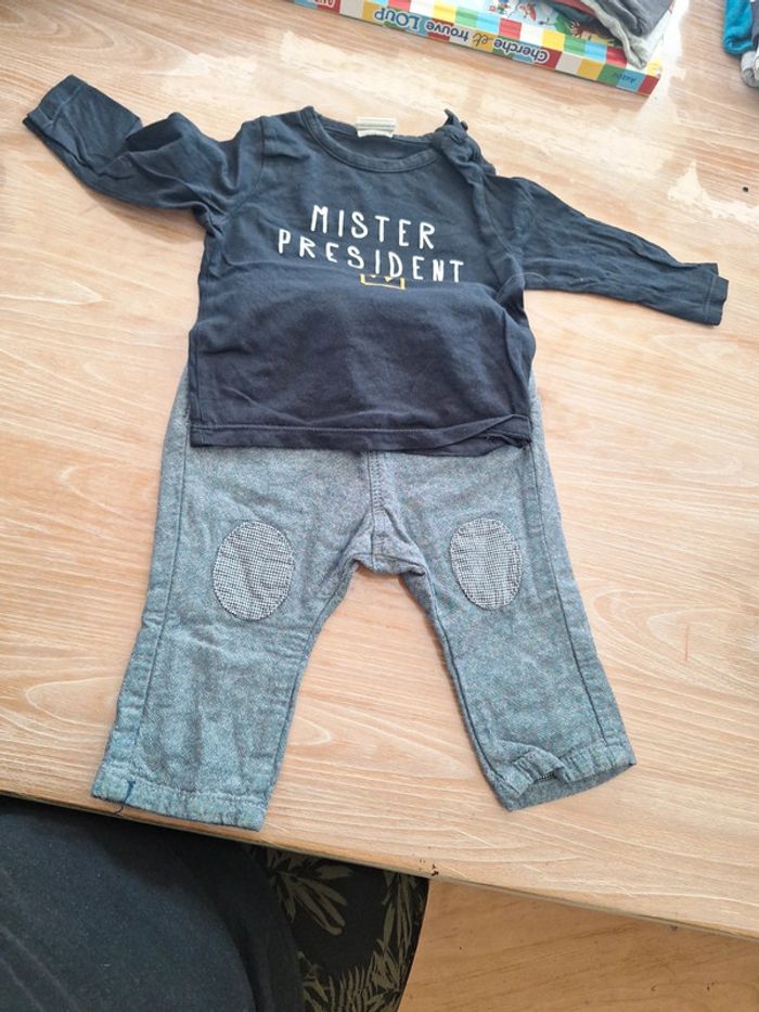 Ensemble garçon : pantalon TAPE A L'OEIL + tee shirt ML KIABI taille 6 mois