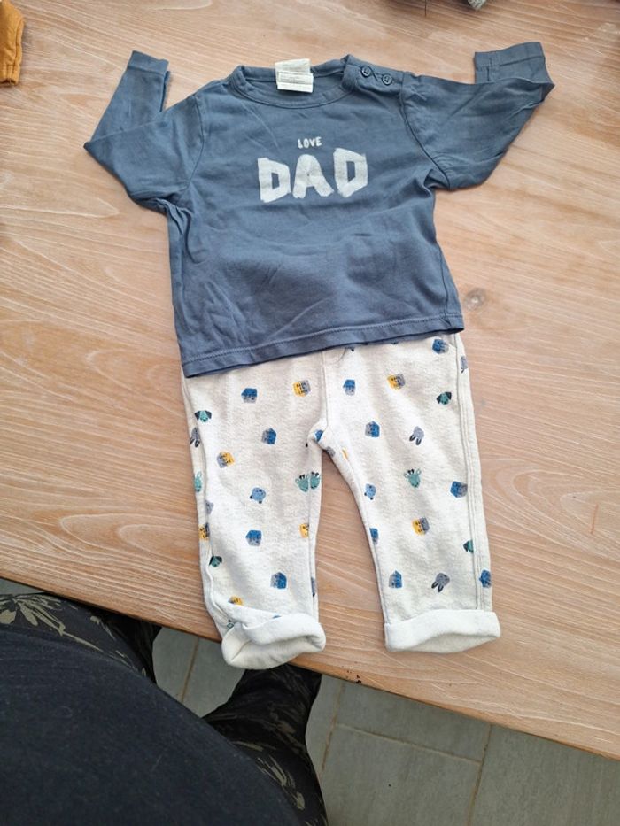 Ensemble garçon : tee shirt ML KIABI + pantalon OBAIBI taille 6 mois