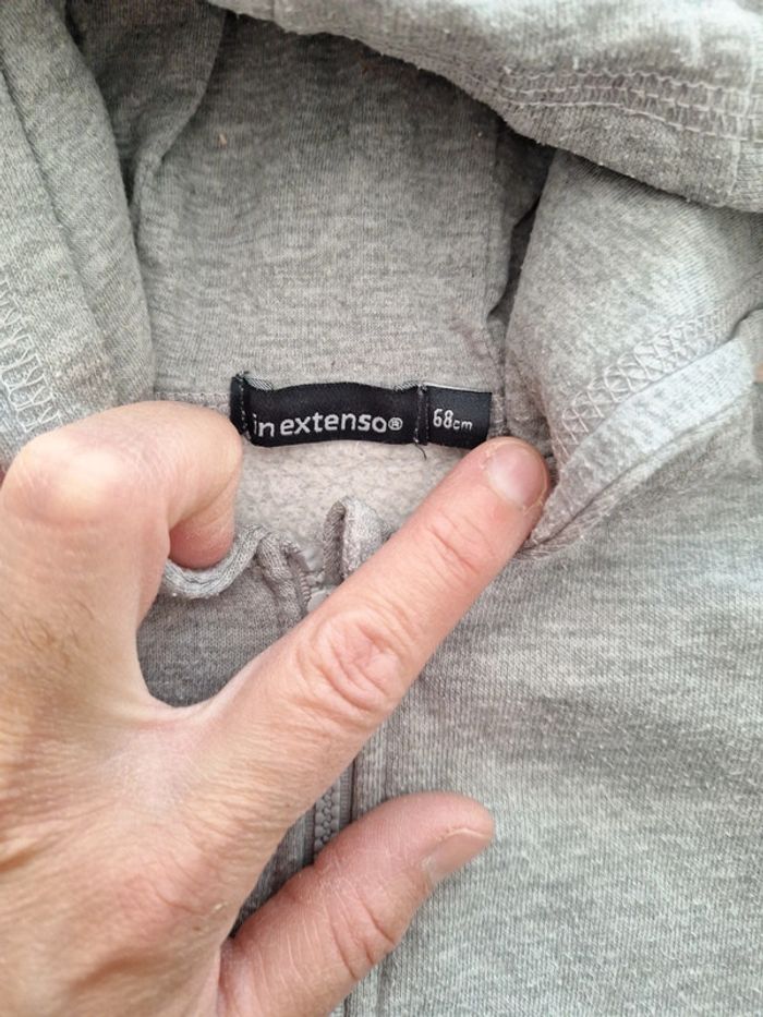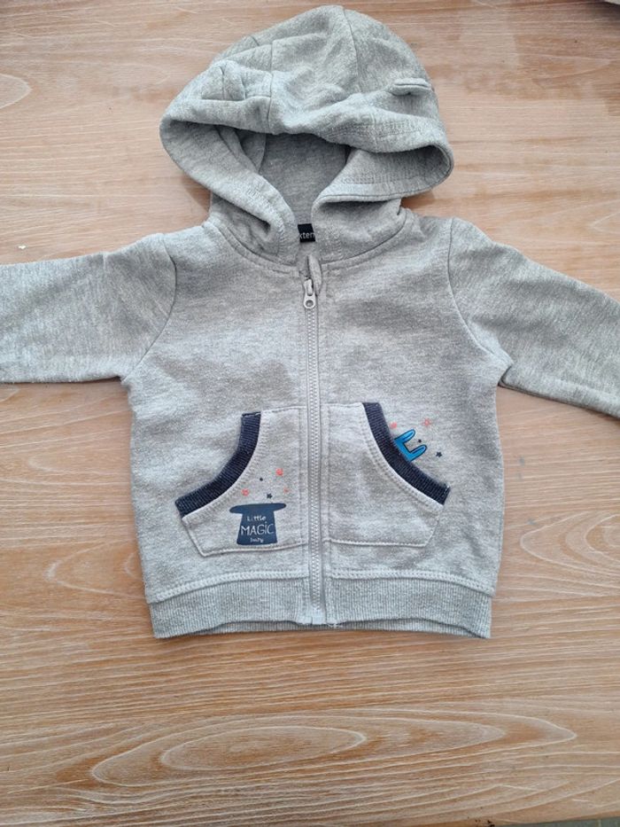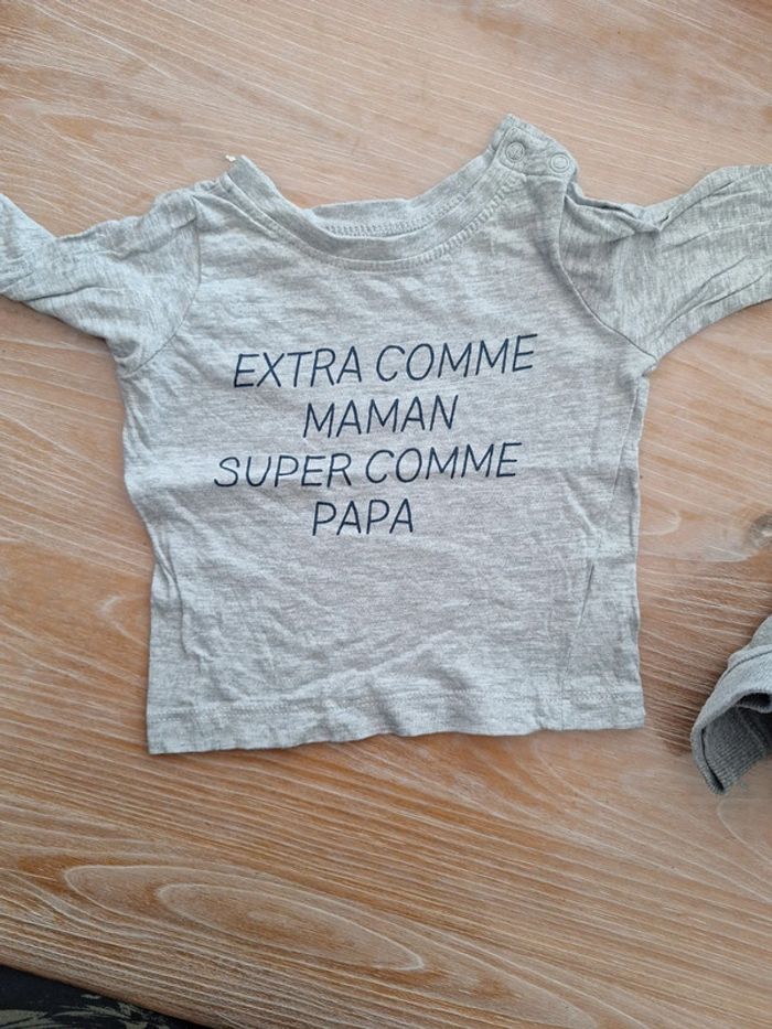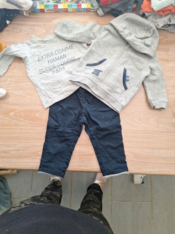 Ensemble garçon 3 pièces : pantalon KIABI + gilet à capuche IN EXTENSO + tee shirts ML TISSAIA taille 6 mois