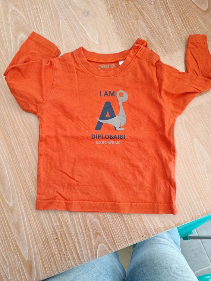 Tee shirt ML (OBAIBI) + pantalon (KIABI) taille 6 mois