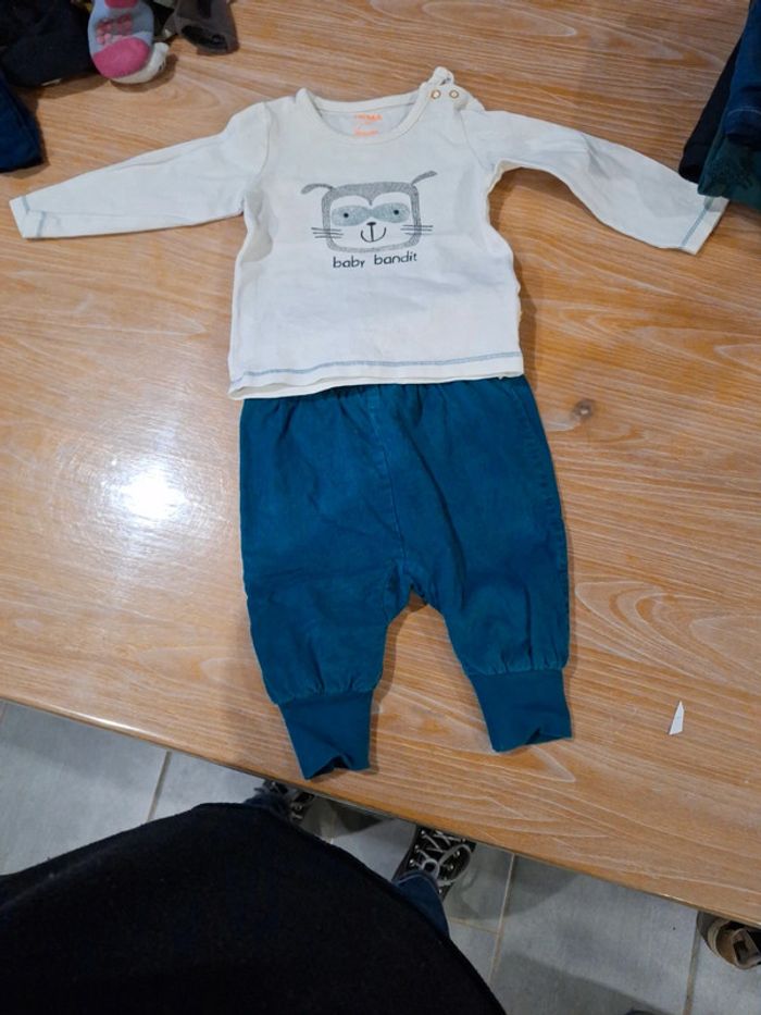 Ensemble bébé garçon - tee-shirt manches longues HEMA et pantalon velours TAPE A L'OEIL- taille 3 mois