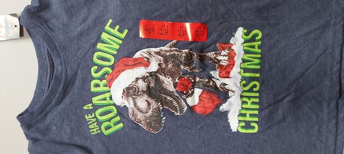 Tshirt manche longue dinosaure Noël 6/7 ans