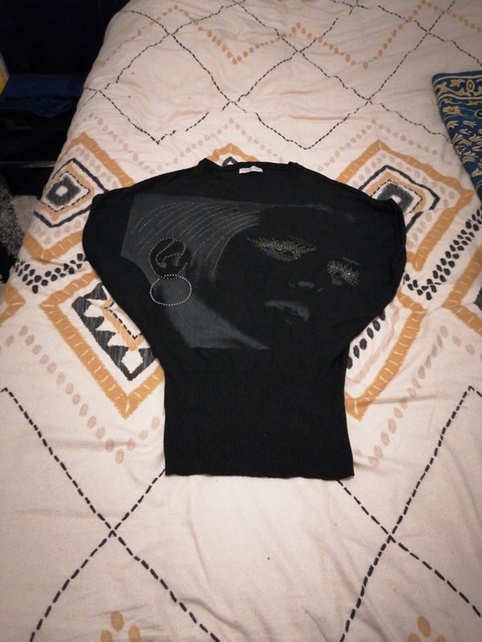 Vend pull robe manchd courte de couleur noir avec dessin voir photo Taille unique