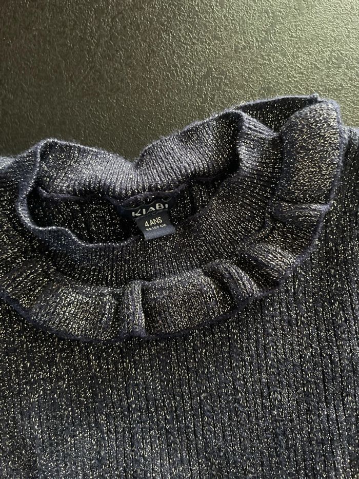 Blouse bleu marine pailletée taille 4 ans 98-107 cm. Très bon état.