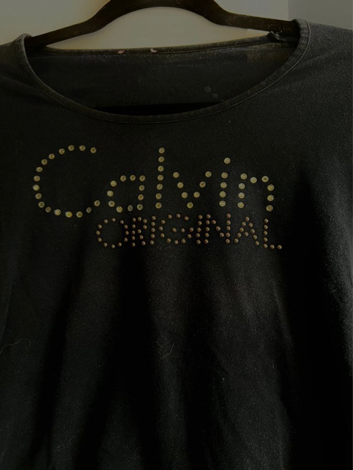 Blouse authentique Calvin Klein couleur noir. Taille XS. Très bon état, il ne manque aucun brillant. Voir photos.