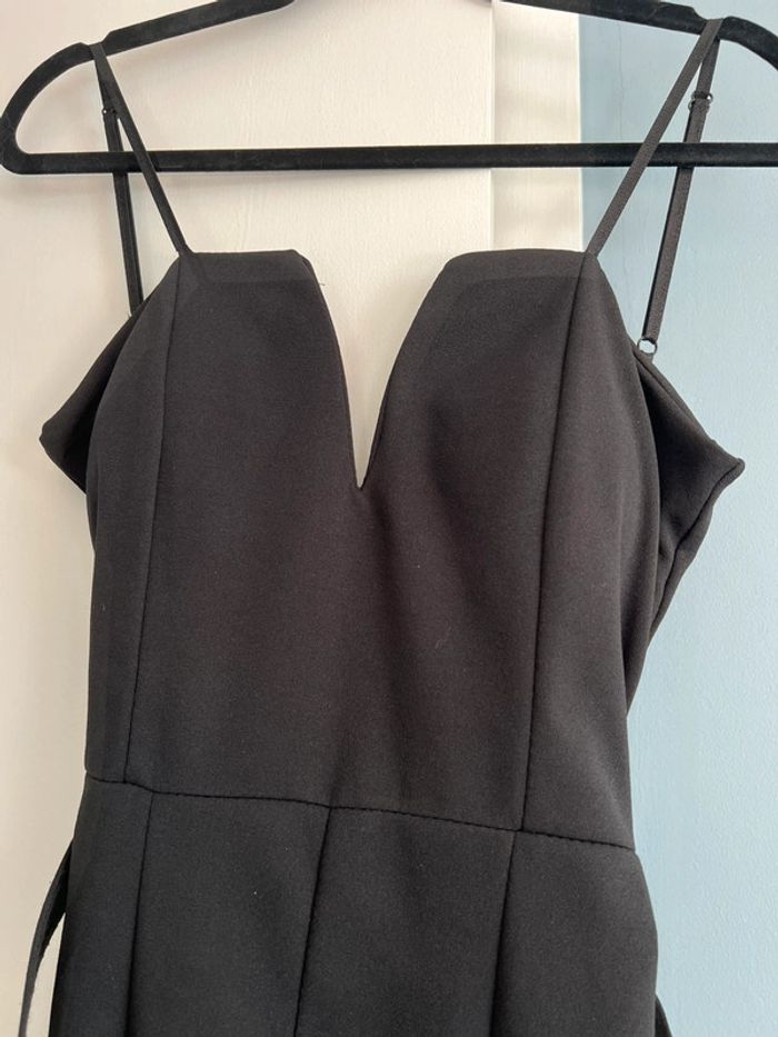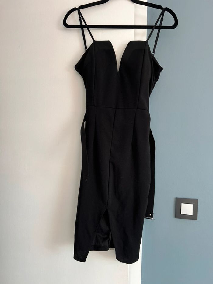 Superbe robe noir avec ceinture. Superbe décolleté en V. Portée 1x ! Devenue trop petite pour moi 😔 Taille 36.