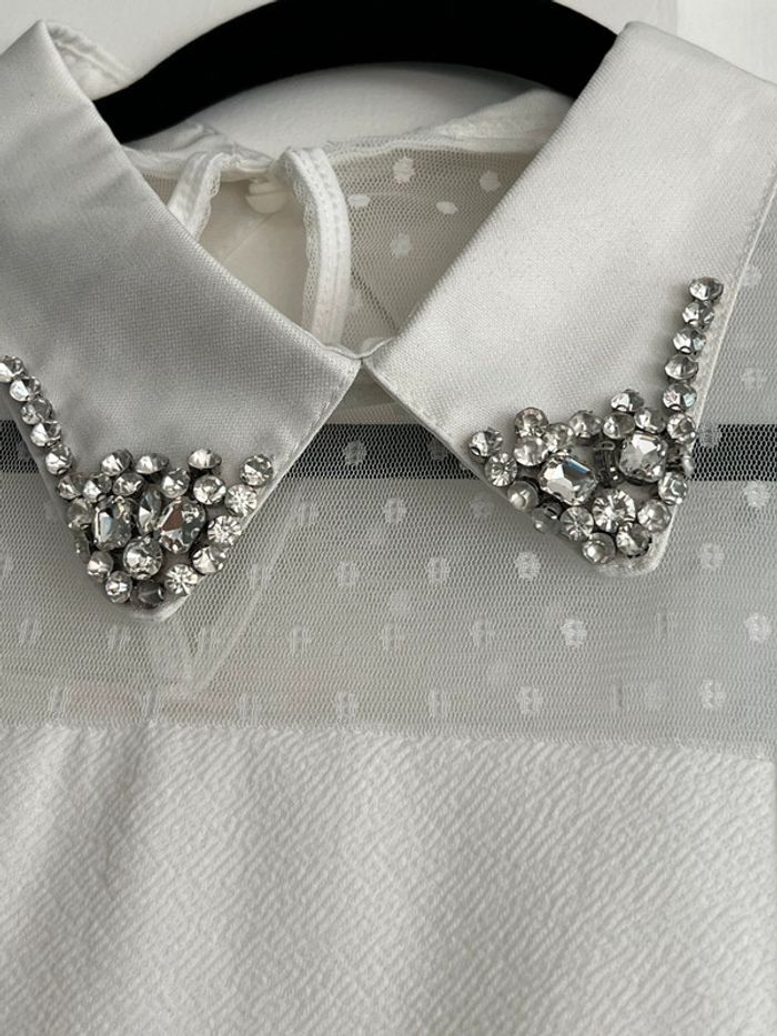 Débardeur col avec brillant et dentelle. Bouton à l’arrière. Porté 1x. Taille unique. Très bon état.