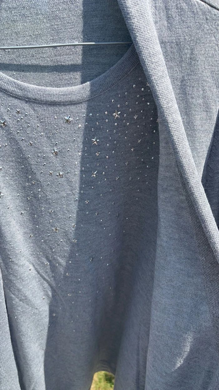 Blouse en très bon état. Taille non inscrite. Équivaut a une taille L. Porté 1-2x.