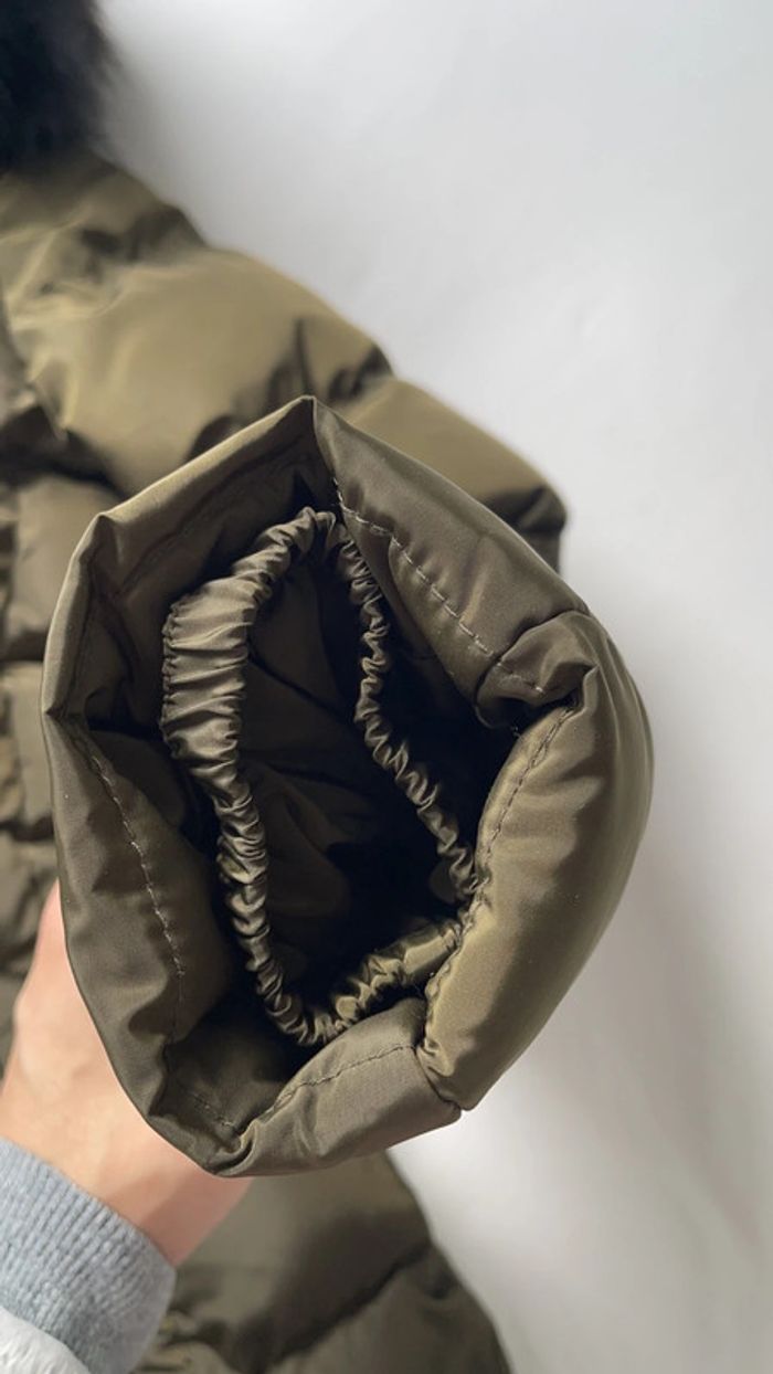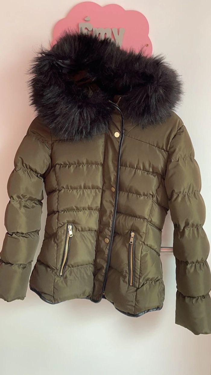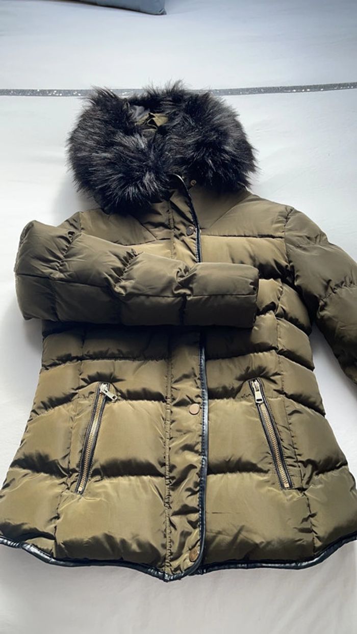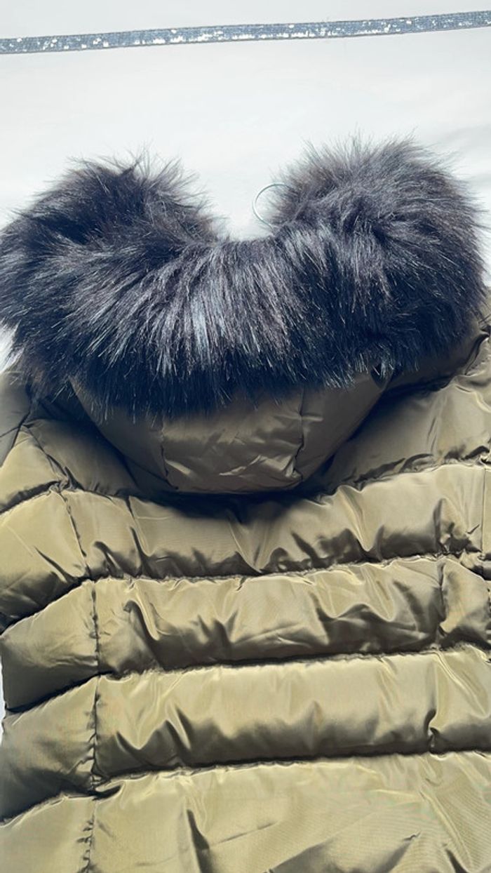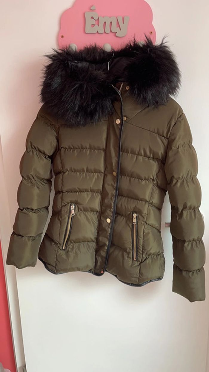 Manteau/doudoune Neuf couleur kaki, taille S. Acheté 55 € sur le site internet Fringue de Toi. Grosse fourrure à la capuche amovible. (La capuche reste sans la fourrure). Fermeture du manteau avec tirette et pressions. Jamais porté mais juste essayé ! Cause de la vente : très beau manteau, même porté, mais je préfère rester classique et porter un manteau noir. De plus, j’ai déjà beaucoup de doudounes.