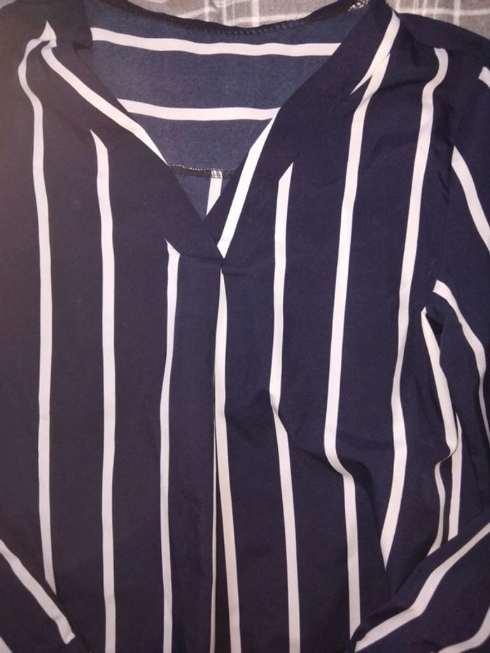 Haut bleu marine et blanc à rayure col v - photo numéro 1