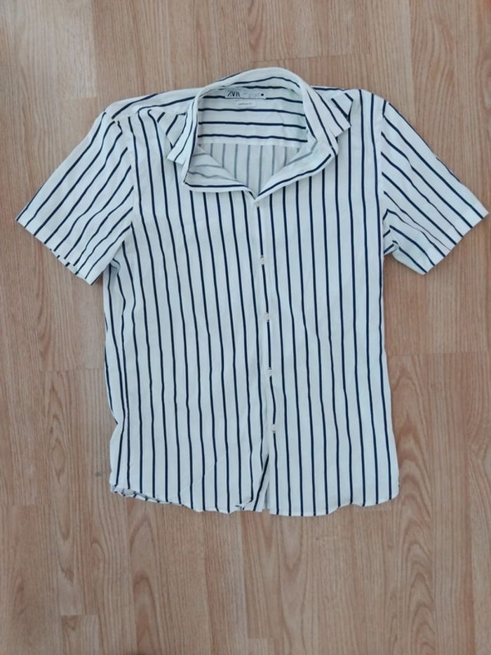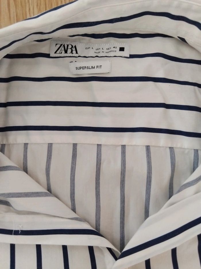 Chemise légère homme blanche et marine à rayure zara L - photo numéro 1
