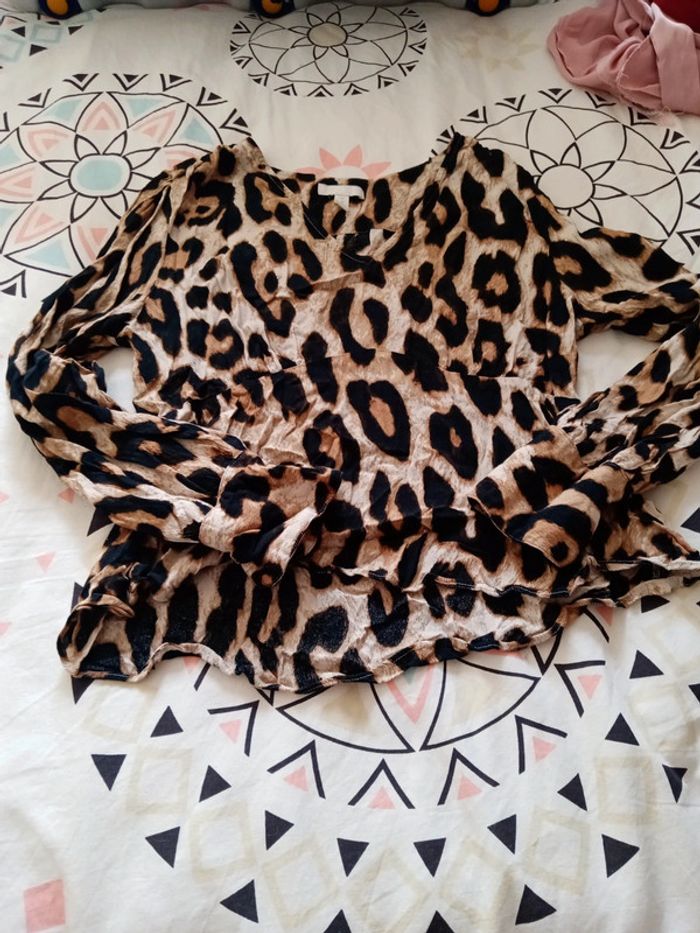 Blouse Haut manche longue col v léopard - photo numéro 1