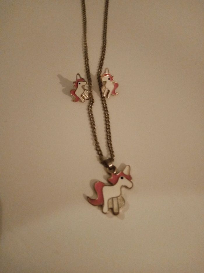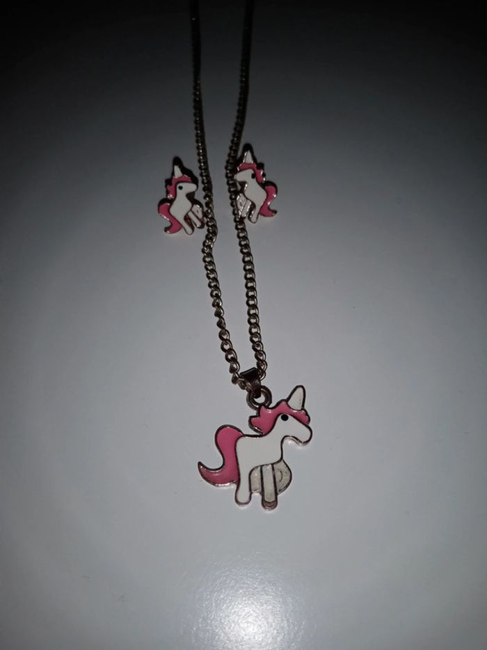Bijoux Parure boucle d'oreille collier fille licorne - photo numéro 1