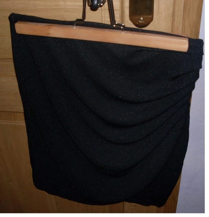Jupe "MIM" avec effet de fronces sur le devant (drapée) arrive un peu plus haut que le genou idéal pour occasions (soirée, fêtes de fin d'année) taille M état neuve noire pailletée elle n'a été porté qu'une seule fois (quelques minutes), mais est légèrement transparente donc cela ne me convient pas prix ferme merci Pour visualiser tous ce que je possède en taille 38 / M pour femme : #ambre6269038