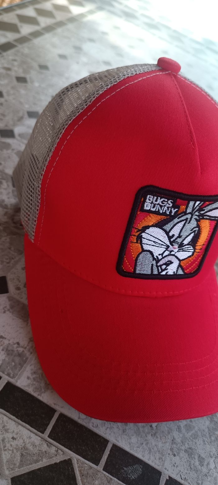 Casquette Trucker Looney Tunes Bugs Bunny Snapback Rouge Couleur : Rouge Visière arrondie Rouge Patch : Looney Tunes Bugs Bunny Casquette avec filet Réglage facile par Snapback Taille unique réglable du 55.5 cm au 60 cm État : Neuf sans étiquette Coloris : Rouge