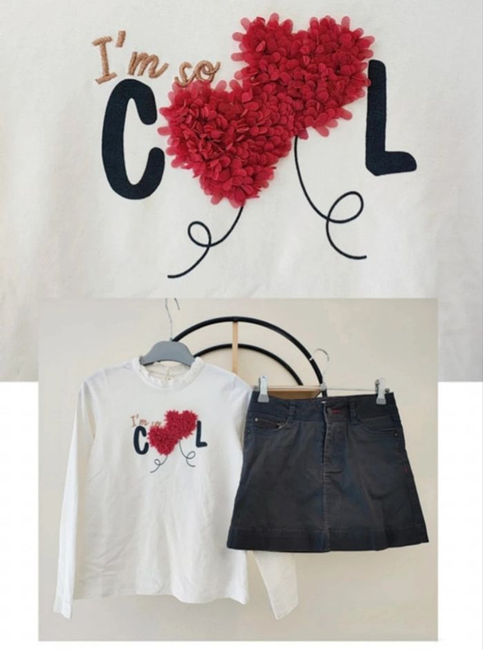10 ans ensemble teeshirt Vertbaudet et jupe Okaïdi