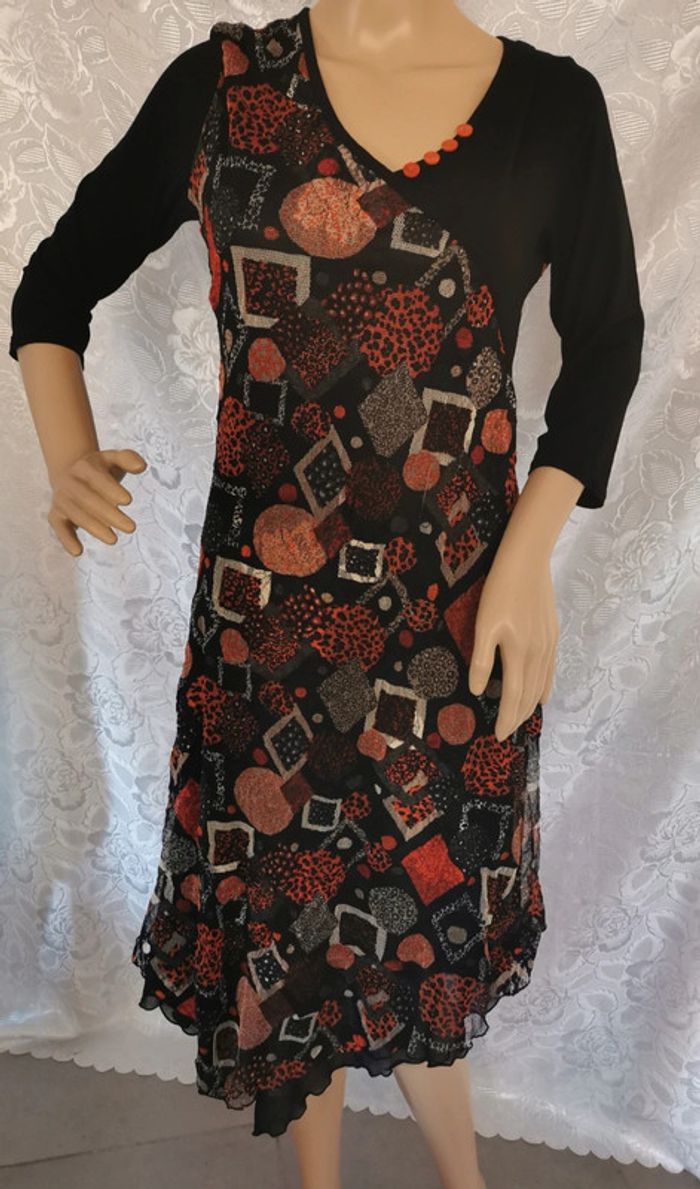 Robe asymétrique colorée. Noir. Orange– La Mode Est À Vous – T. 38 - photo numéro 1