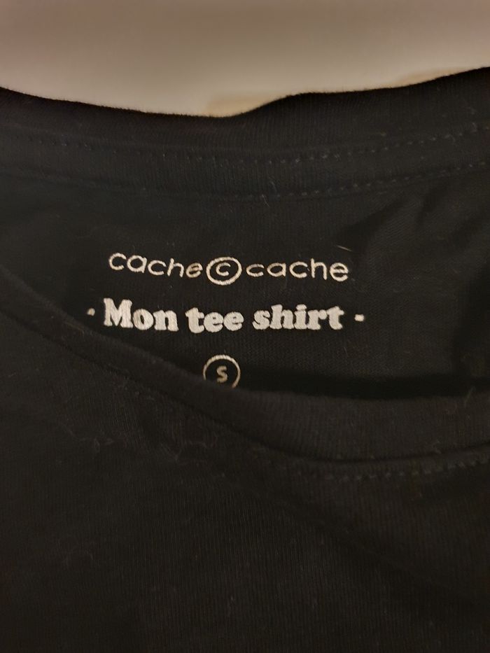 Tee shirt noir imprimé de marque cache cache en taille S très bon etat