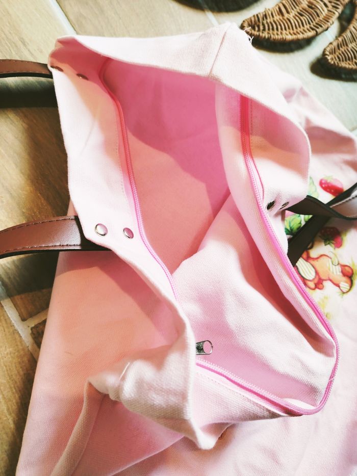🍓Grand Sac cabas rose en coton Charlotte aux fraises - photo numéro 6