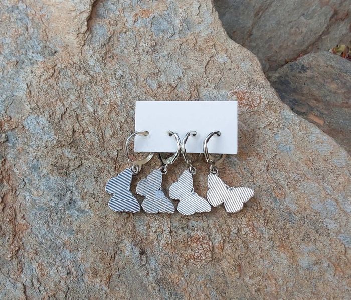 Lot de 2 paires de boucles d oreilles neuves papillon argenté blanc et beige - photo numéro 2