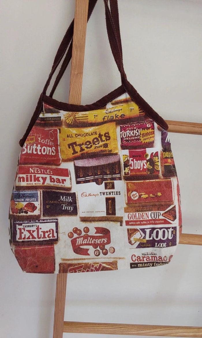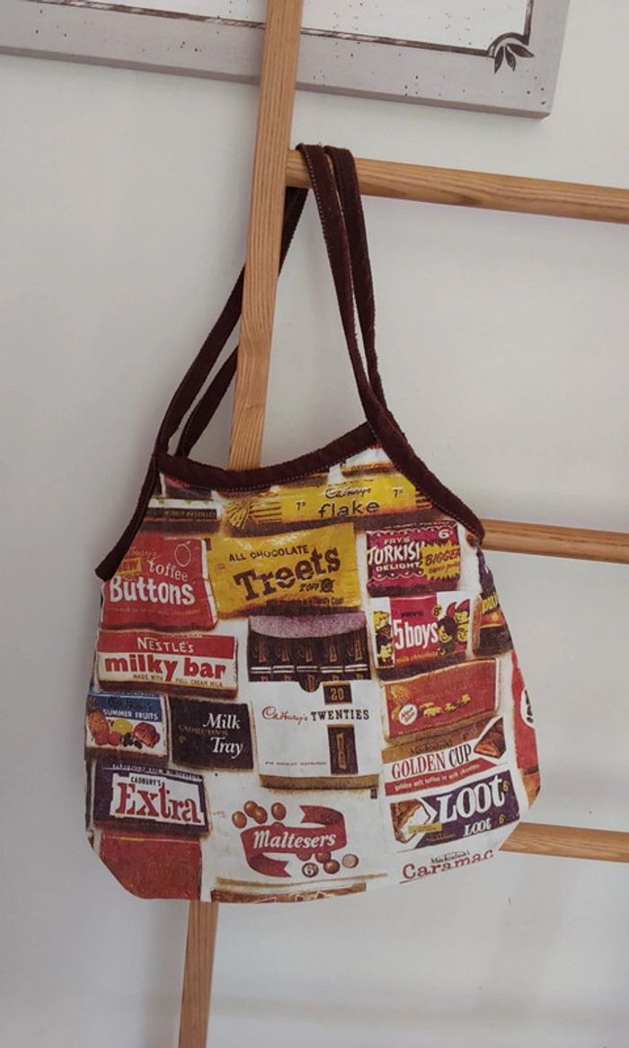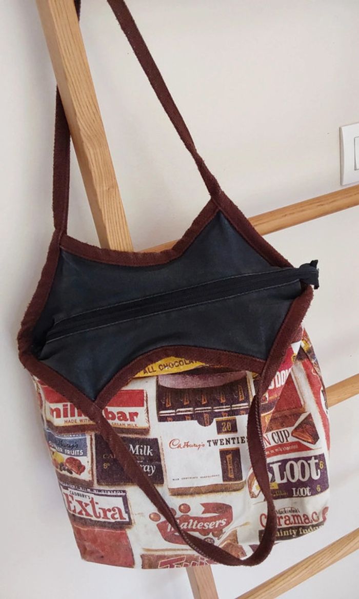 Sac bandoulière fourre tout cabat imprimé tissu vintage