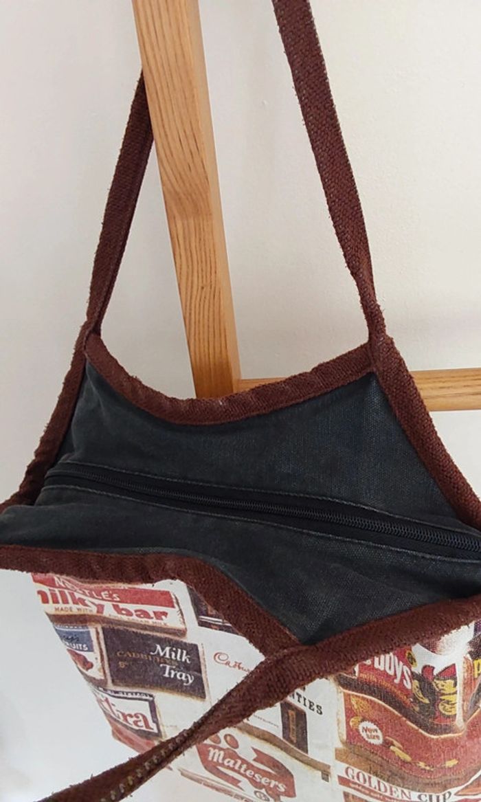Sac bandoulière fourre tout cabat imprimé tissu vintage - photo numéro 7