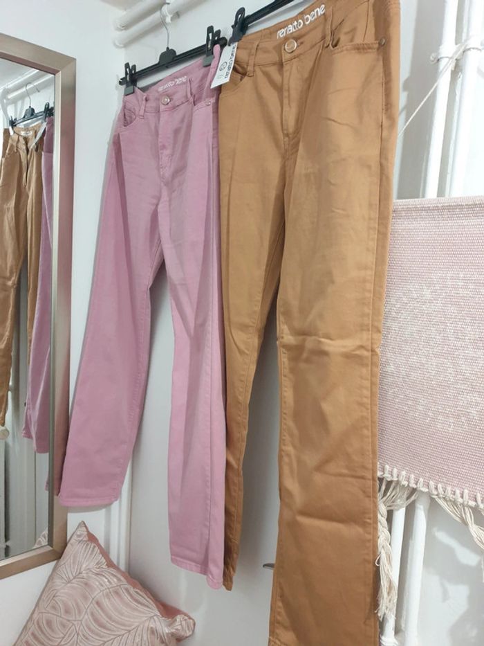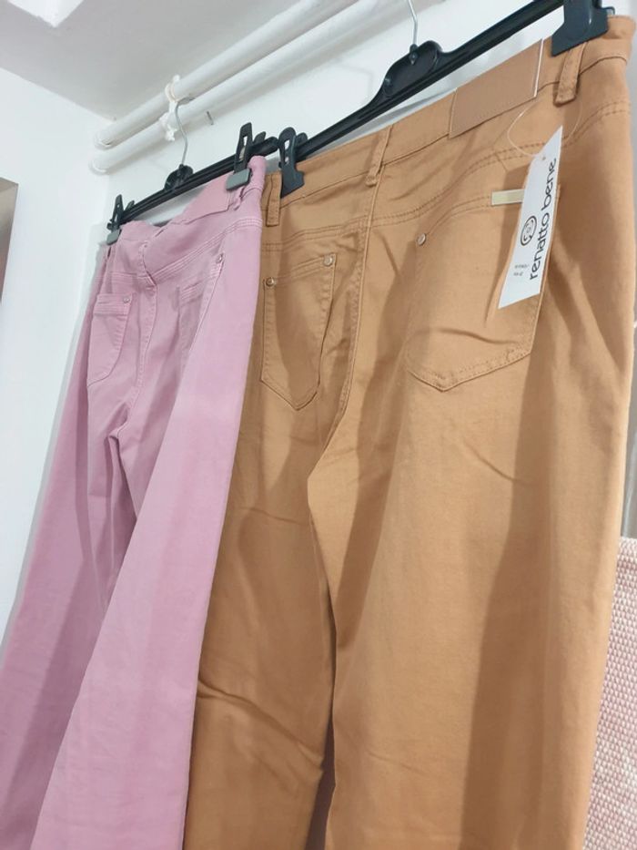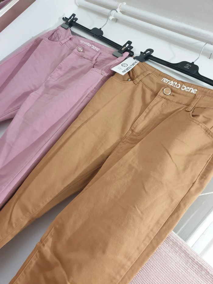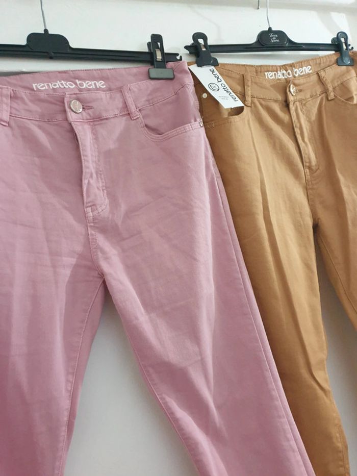 2 Pantalons Droits Coton Elasthane Renatto Bene Taille 42
