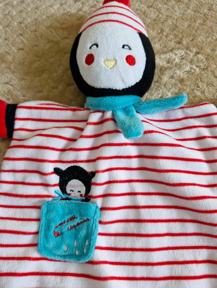 #doudou #plat #pingouin #rayé #motsdenfants #coucoulescopains Neuf #doudoumelodyriri31
