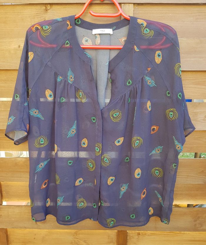#blouse #chemise #chemisier #loose #large #overseize #transparente à imprimé #plume #paon #tailleXS de chez #mango en #tresbonetat #tailleXSmelodyriri31