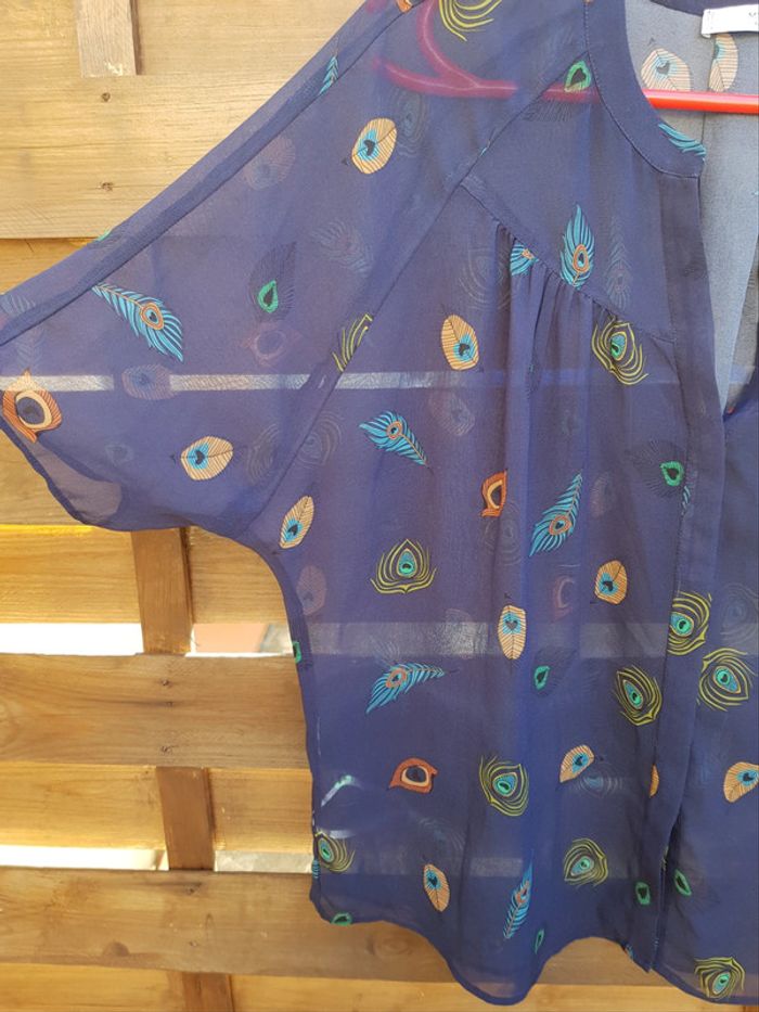 Blouse large transparente, à imprimé plumes paon - photo numéro 3