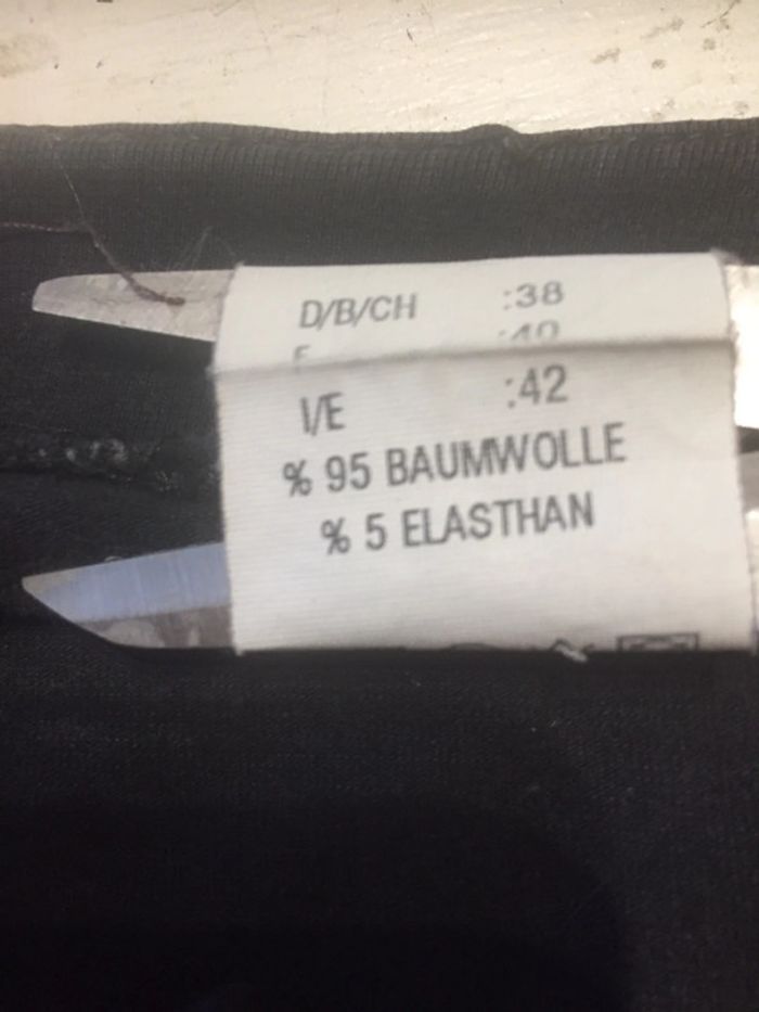 Veste noire, taille 40, longueur 50 cm, largeur épaules 42 cm, largeur aisselles 48 cm, manque le dernier bouton du bas, Fausses poches, Petit accroc reprisé sur épaule au dos, 95 % coton, 5% élasthanne - TBE