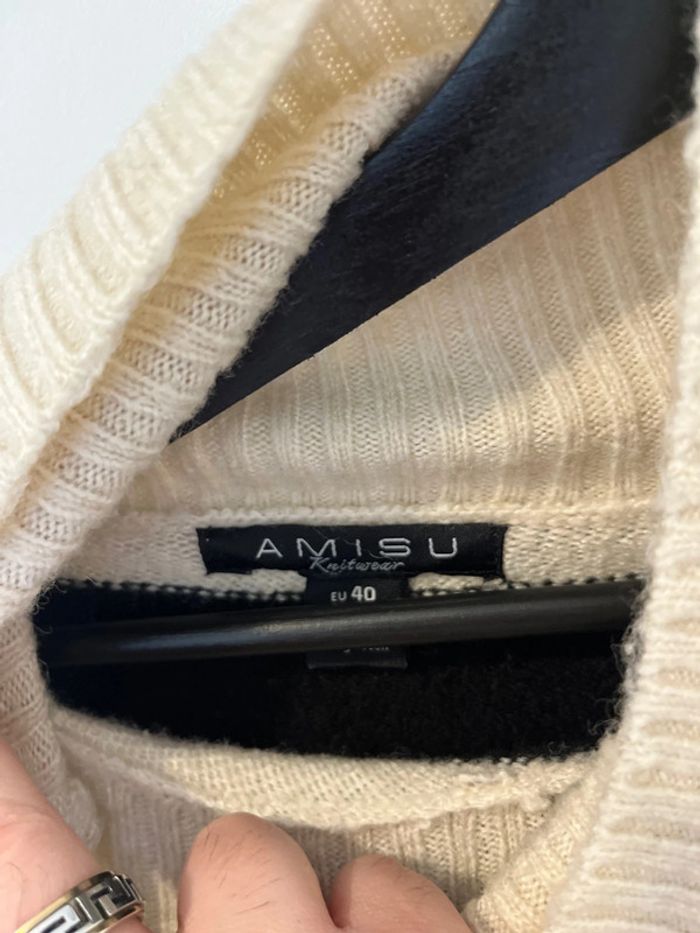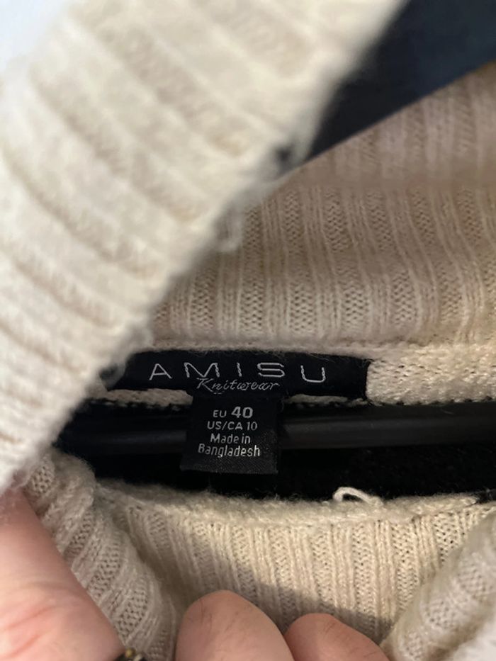 Pull avec col roulé de couleur noir et blanc de la marque AMISU et de taille 40