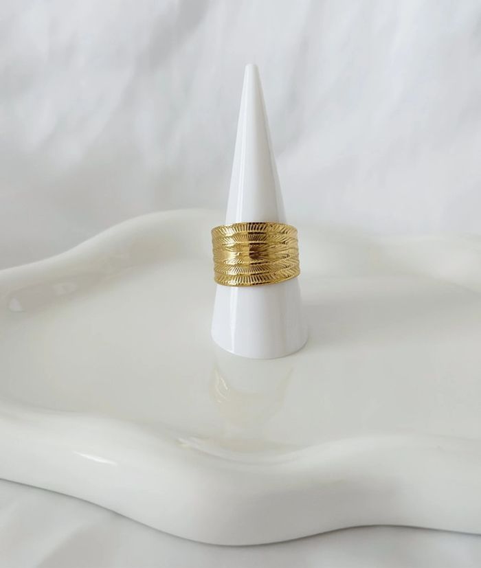 Bague épaisse en acier inoxydable dorée à gravures Elle est ajustable mais est dure à ajuster, elle convient à une taille 52 Neuve #baguefemme #bijouxfemme #mode #fashion #accessoires #fashionjewelry #tendance