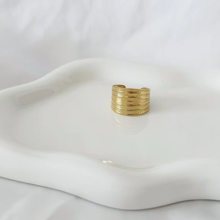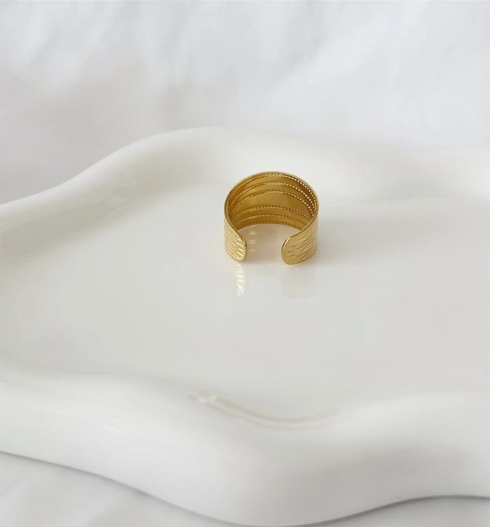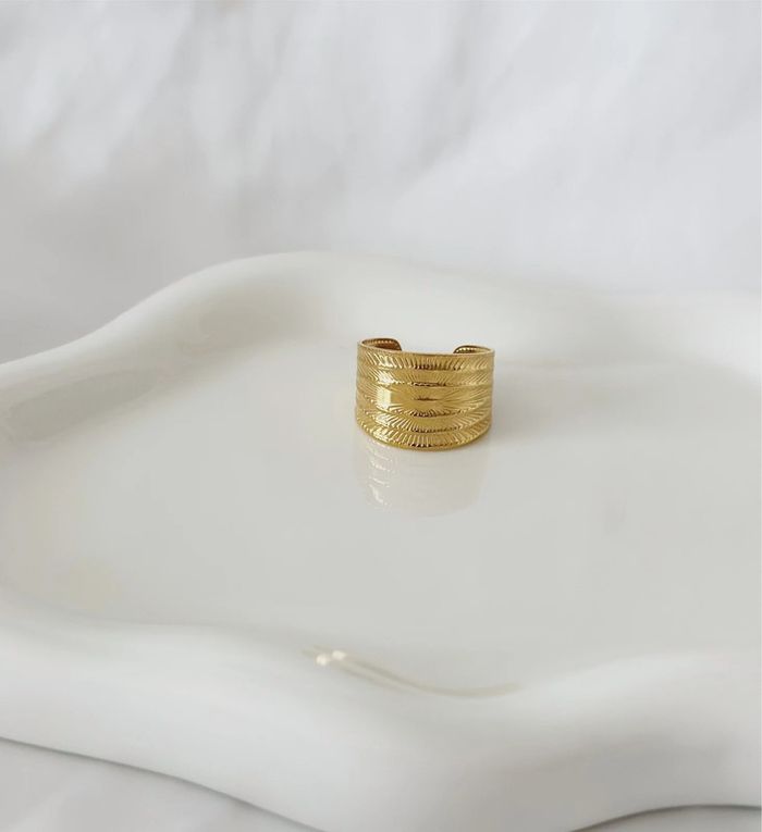 Bague épaisse en acier inoxydable dorée à gravures - photo numéro 1