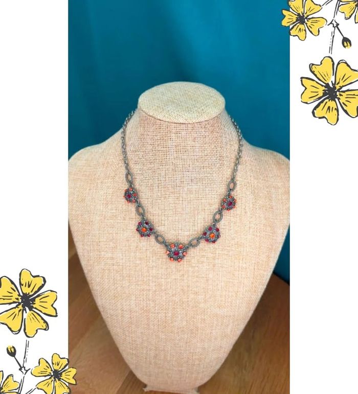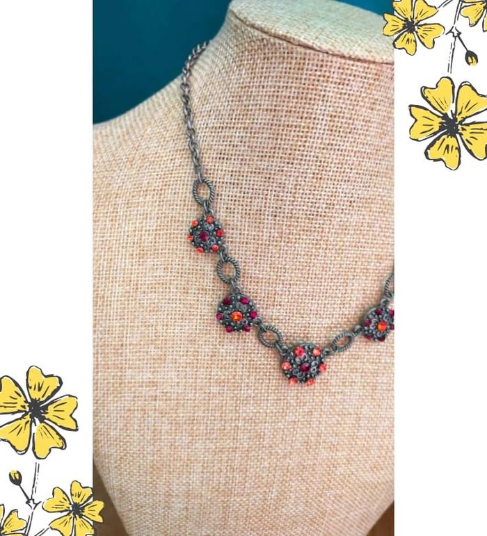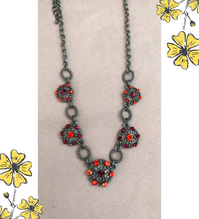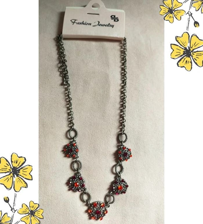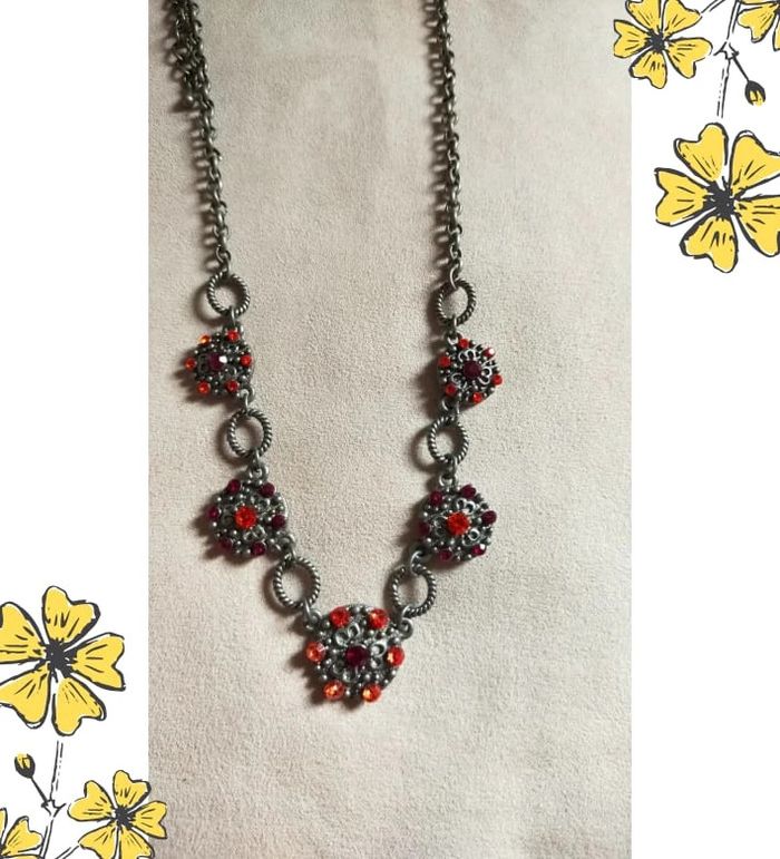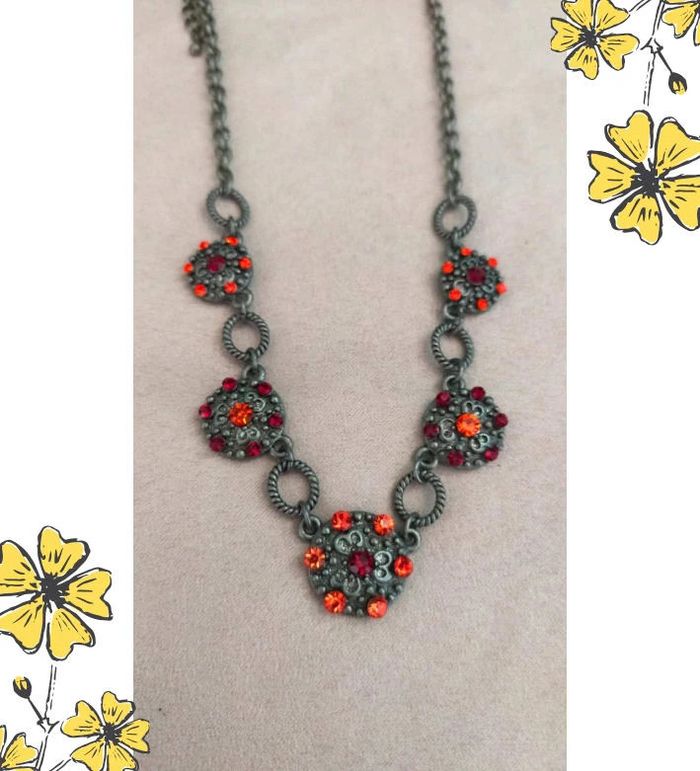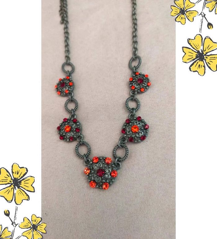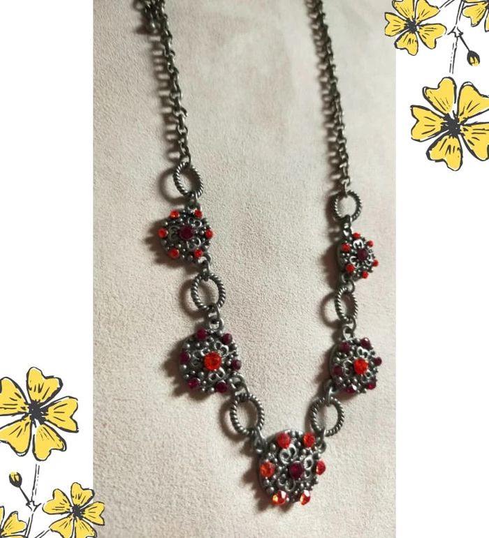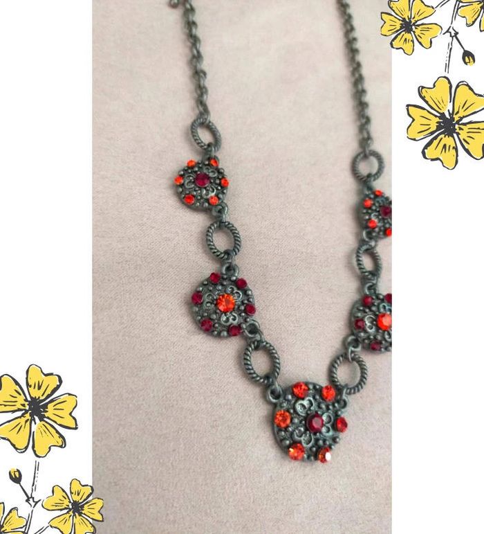Sublime collier de style vintage, composé de maillons torsadés en métal gris vieilli et de pendentifs ronds sertis de strass rouges et orange éclatants. Un bijou plein de caractère, idéal pour rehausser une tenue sobre ou ajouter une touche rétro chic à votre look. 🔹 Style : Vintage / Bohème chic 🔹 Couleurs : Argenté vieilli, rouge rubis, orange feu 🔹 Fermoir : Mousqueton 🔹 Longueur : Ras de cou ajustable 🔹 Matière : Métal fantaisie, strass 🔹 État : Très bon état 🧷 Collection PMN = Petit prix – Mini prix – Fantaisie 💡 Idée look : Parfait avec un chemisier noir ou un col roulé uni pour faire ressortir les couleurs éclatantes du bijou. 💌 Je soigne l’envoi & l’emballage. Envoi rapide. 🎁 Possibilité d’envoi en lot ou d’ajouter un petit cadeau surprise en cas de plusieurs achats ! BIFAN #collier #bijouvintage #fantaisie #strass #vintagechic #boheme #bijouPMN #bijoucoloré #collierfantaisie #collierrouge #bijouoriginal #rasdecou #bijouvintagestyle