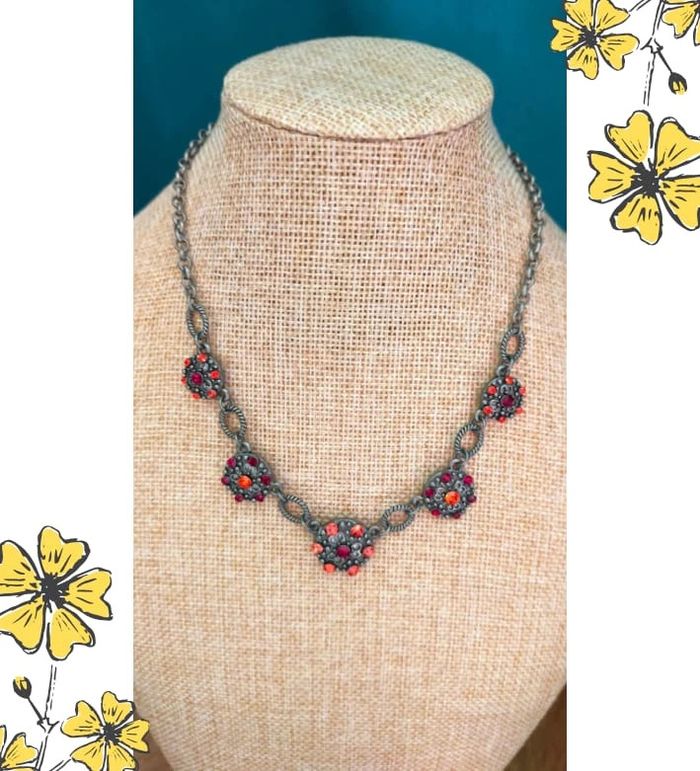 Collier vintage fantaisie – Perles strass rouges & orange