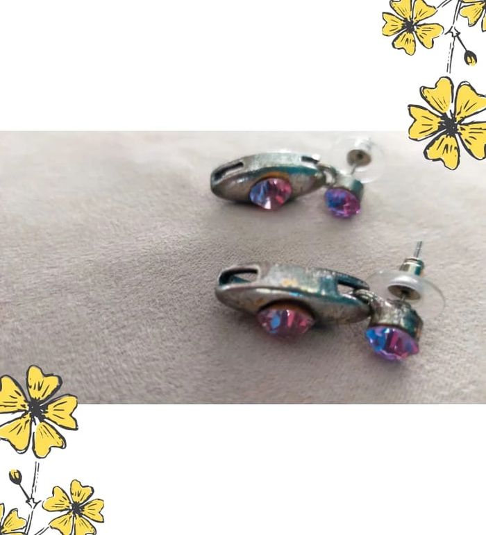Magnifique paire de boucles d’oreilles vintage à clous, en parfait état. Elles sont composées de deux strass roses facettés aux reflets multicolores, montés sur une structure en métal argenté brillant et ajouré. Un design à la fois rétro et lumineux, parfait pour sublimer une tenue en toute simplicité. 🔹 Strass facettés aux jolis reflets 🔹 Structure argentée brillante, aucune trace d’usure 🔹 Fermoirs clous + embouts silicone transparents 🔹 Légères et confortables 🔹 Longueur : env. 2,7 cm 🔹 Quelques traces du temps sur les boucles, visibles sur les photos 🔹Collection Nuances de Rose 💖 Élégantes et raffinées, elles s’intègrent aussi bien dans un style vintage que moderne. Une pépite à adopter ! L10V #bouclesdoreilles #bijouxvintage #bijouxroses #strassroses #bijouxoriginaux #bouclespendantes #accessoiresfemme #bijouxfantaisie #lookretro #bijouxféminins #vintagechic #vinted