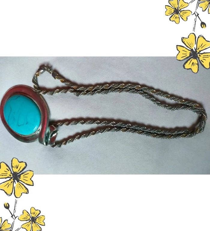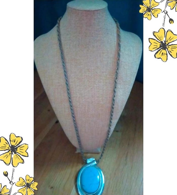 Collier vintage chaîne torsadée et pendentif turquoise - photo numéro 1